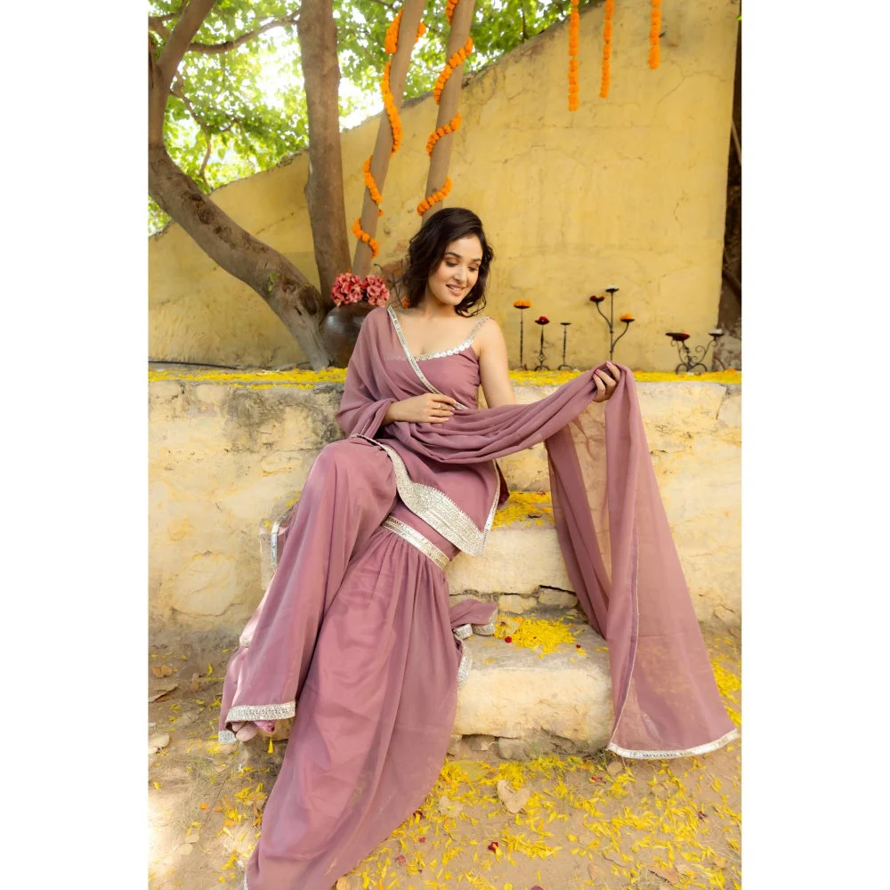 DEASHA INDIA Avya Mauve Detailed Sharara with Short Kurta and Dupatta (Set of 3)