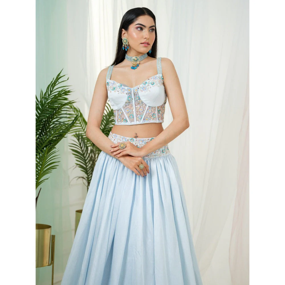 Tamaraa by Tahani Blue Fable Lehenga with Blouse and Dupatta (Set of 3)