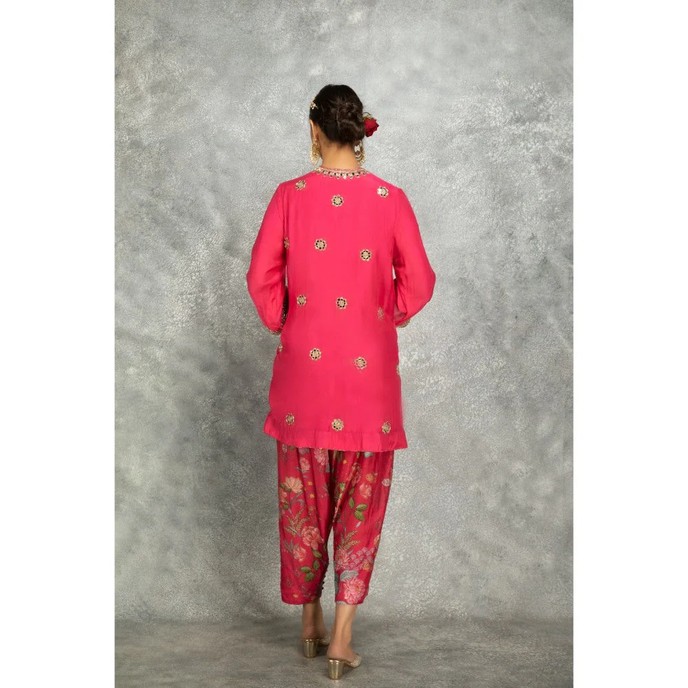 Tanu Malhotra Pink Mirror Embroidered Kurta with Salwar and Dupatta (Set of 3)