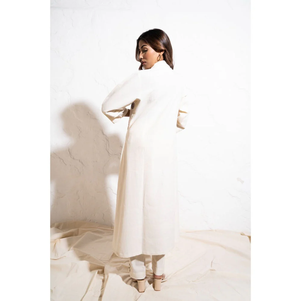 The White Tree Studio Off-white Handwoven Cotton Embroidered Shift Midi Dress
