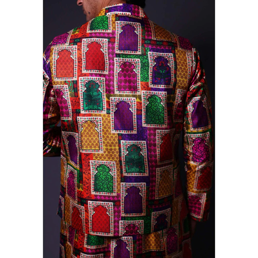 THETAA Multi-Colour Nehru Jacket with Asymmetrical Kurta and Pant (Set of 3)
